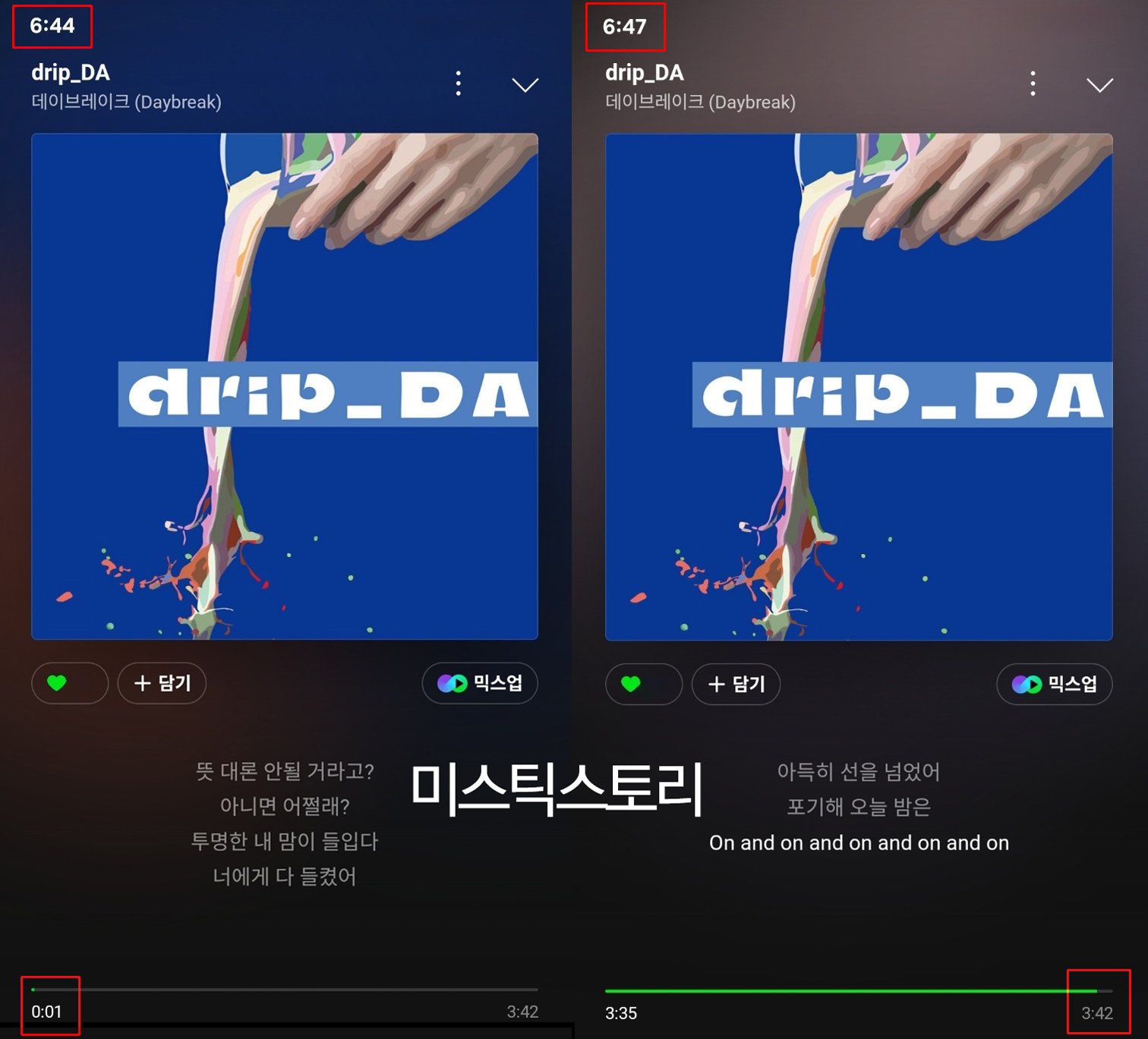 1. 음원 사이트 이용하여 데이브레이크의 DS ‘drip_DA’ 을 재생한다
